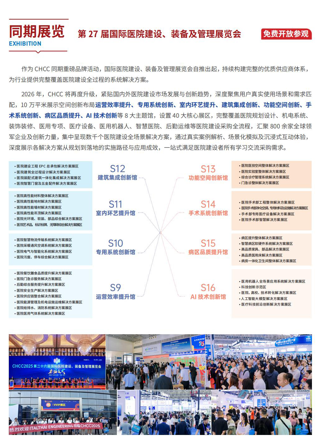 筑医台:国内首个以“为中国建设更好的医院”为目标的开放式创新平台。结合深厚行业基盘和创新驱动型产品,为医院建设各领域提供以运营为导向的全流程智慧解决方案。通过O2O交互重构链接,已全面布局形成集媒介业务、活动业务、智库业务、供应商业务于一体的生态化服务体系,致力于重塑资源时代医院建设IP运营新价值。 国药励展:国药励展展览有限责任公司是中国大健康产业链(包括医药医疗、食品、化妆品、体育健身和环境健康等领域)及科研教育领域领先的展览和会议组织者,是中国领先的医药健康产业集团—中国医药集团和世界领先的博览集团—励展博览集团的合资企业。 筑而瑞:北京筑而瑞科技有限公司(以下简称“筑而瑞”),是国药励展与筑医台科技的合资公司,致力于聚焦美好医院建设,搭建全球范围内专业的医院建设与交流创新平台,主办和策划医院建设领域线上及线下会议和展览活动,旗下拥有全国医院建设大会暨国际医院建设、装备及管理展览会(CHCC)项目。
